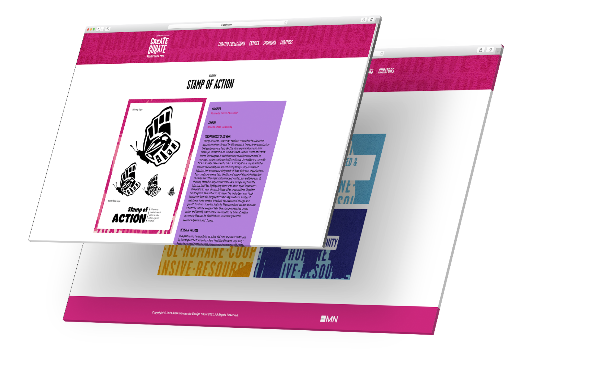 Stamp of action won an award from the Fall 2021 AIGA MN Design Show as a part of the Uplifting Community Curated show.